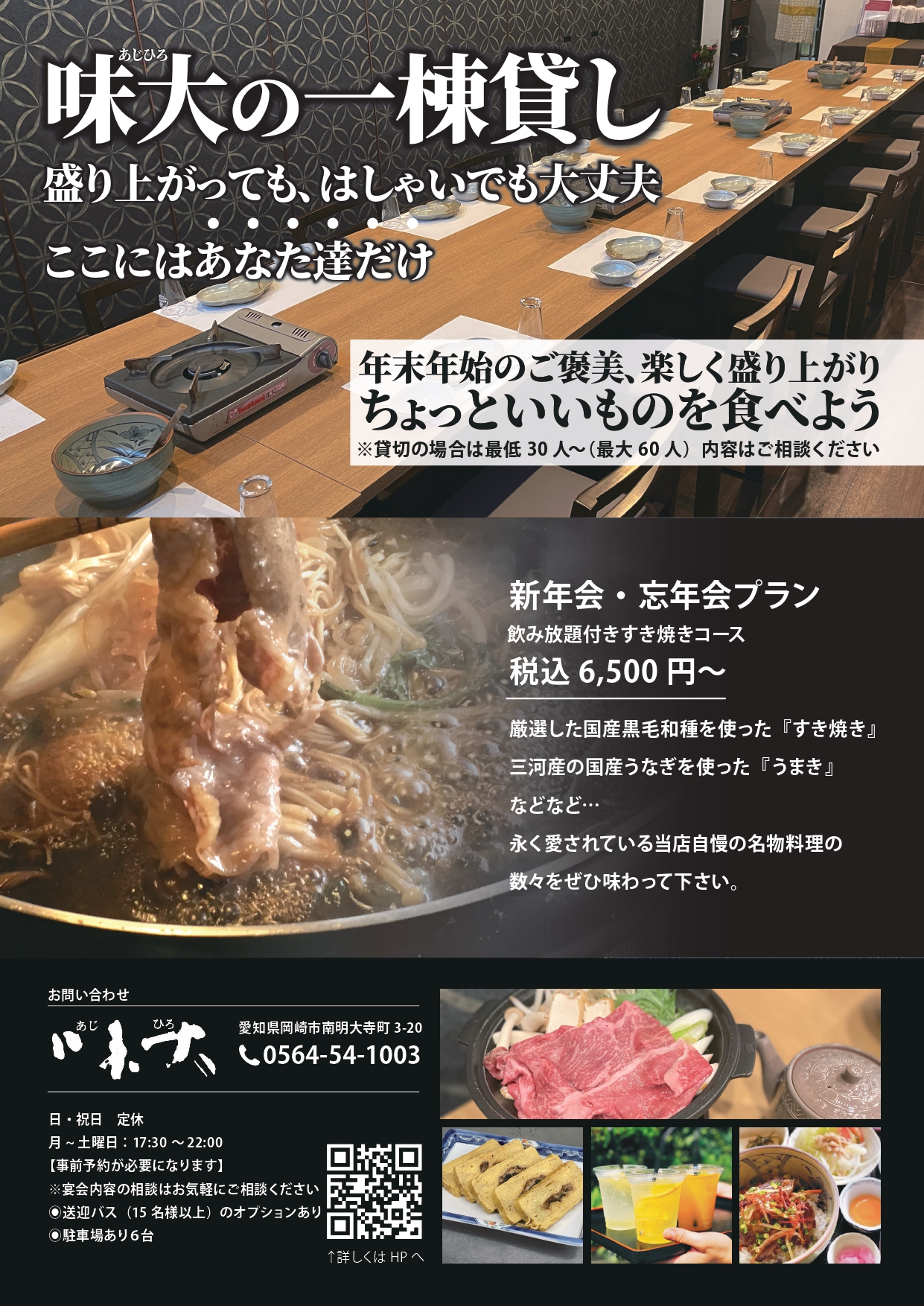 宴会(歓送迎会、忘年会、新年会、親睦会、法事、各種お祝い事など)
